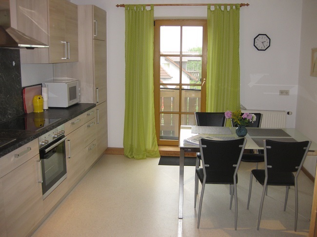 Die Ferienwohnung verfügt über eine schöne neue moderne vollausgestattete Küche mit Spülmaschine, Mikrowelle, Backofen, Elektroherd mit Ceranfeld, Kaffeemaschine, Wasserkocher und Eierkocher. Bei Bedarf stellen wir Ihnen gerne einen Hochstuhl für Ihr Baby zur Verfügung. Eine Auswahl an Büchern vertreiben die Langeweile, wenn es einmal regnerischer ist. Auf dem Balkon gibt es einen Elektrogrill und eine Sitzgarnitur.